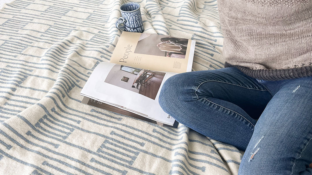 Across the country, crystal-clear braided rivers weave their way through the land – a journey which begins on snow-capped peaks and ends when they spill out into the mighty Pacific Ocean. The palette was carefully chosen to reference the colours of these waters while complementing the natural tones of the pure merino wool we’ve used in these unique and distinctive blankets.